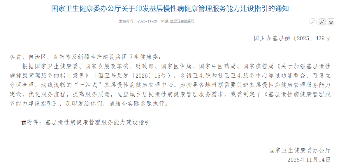 《關于印發基層慢性病健康管理服務能力建設指引的通知》