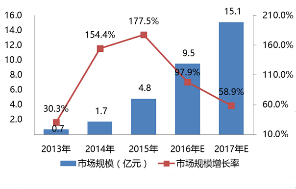 2013年(nian)~2017年(nian)中國移動(dong)CRM市(shi)場規模及增長